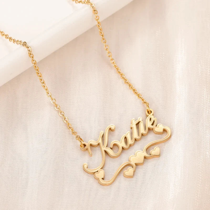 Personalised Single Name Necklace – Ribbon & Hearts Custom Cute Unique Jewellery Gift