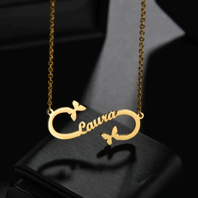 Personalised Single Name Necklace – Ribbon, Butterflies & Hearts Custom For Her Cute Unique Jewellery Gift.